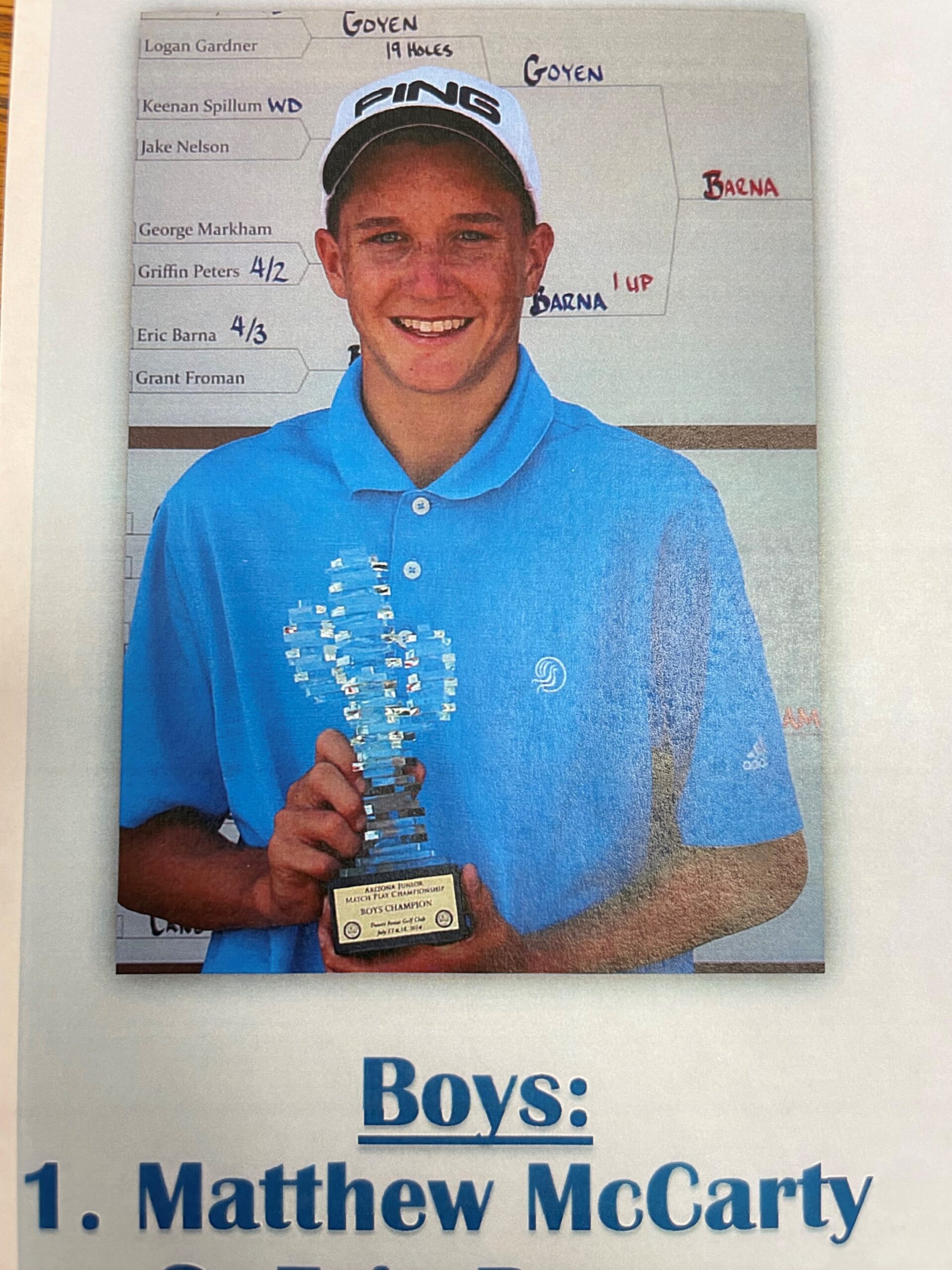 A JGAA member from 2008-2016, McCarty competed in 72 events and captured four wins. The prominent Desert Mountain High School alum went on to have an outstanding tenure at Santa Clara University. The accolades and achievements during his time as a Bronco include 2021 NCAA Regional Individual Qualifier, three-time First Team All-WCC and a 2020 U.S. Amateur Qualifier.