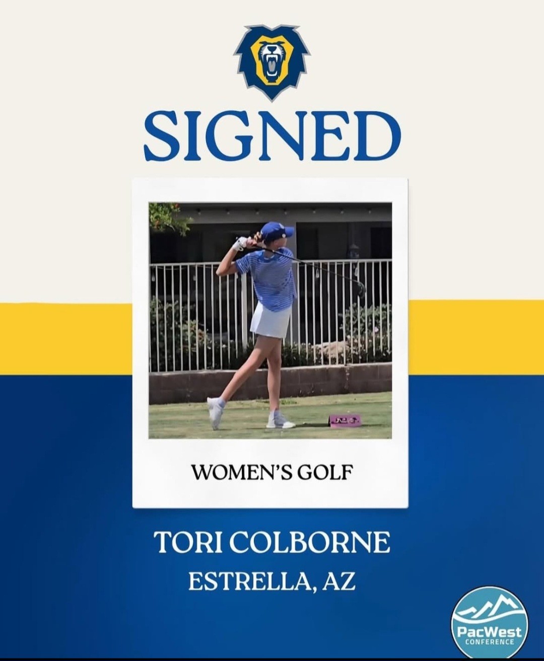 | Tori Colborne | Vanguard University | Estrella Foothills High School | AZ | F |