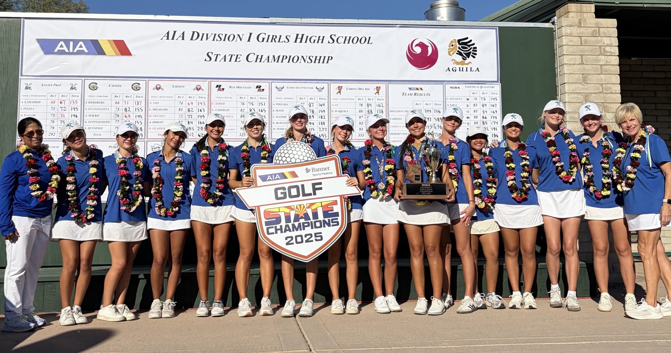 Alexis Lamadrid of Xavier Prep led the Gators to its 40th and third-straight Division 1 golf title as a team while also successfully defending her top individual honors at Aguila Golf Course. The JGAA standout finished 9-under with rounds of 68-67. Lamadrid outperformed Casteel’s Julia Herzberg, also a current JGAA member, by two strokes in a great individual showdown, as Herzberg carded rounds of 66 and 71. Lamadrid can win three in a row, joining elite company with former Gator star Ashley Menne, who won three in a row from 2016-19 and former Gator legend Heather Farr, who won three from 1979-81.
